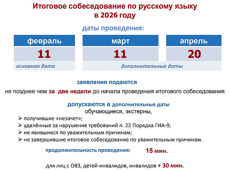 - увеличение продолжительности итогового собеседования на 30 минут;